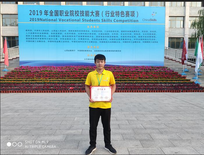 在2019年全国职业院校技能大赛(行业特色赛项)中,我院矿业建筑工程系张帅、李旭东同学获数字化矿山监测技术赛项二等奖,张凯同学荣获瓦斯检查赛项二等奖,白波同学获得综采电气维修赛项三等奖。