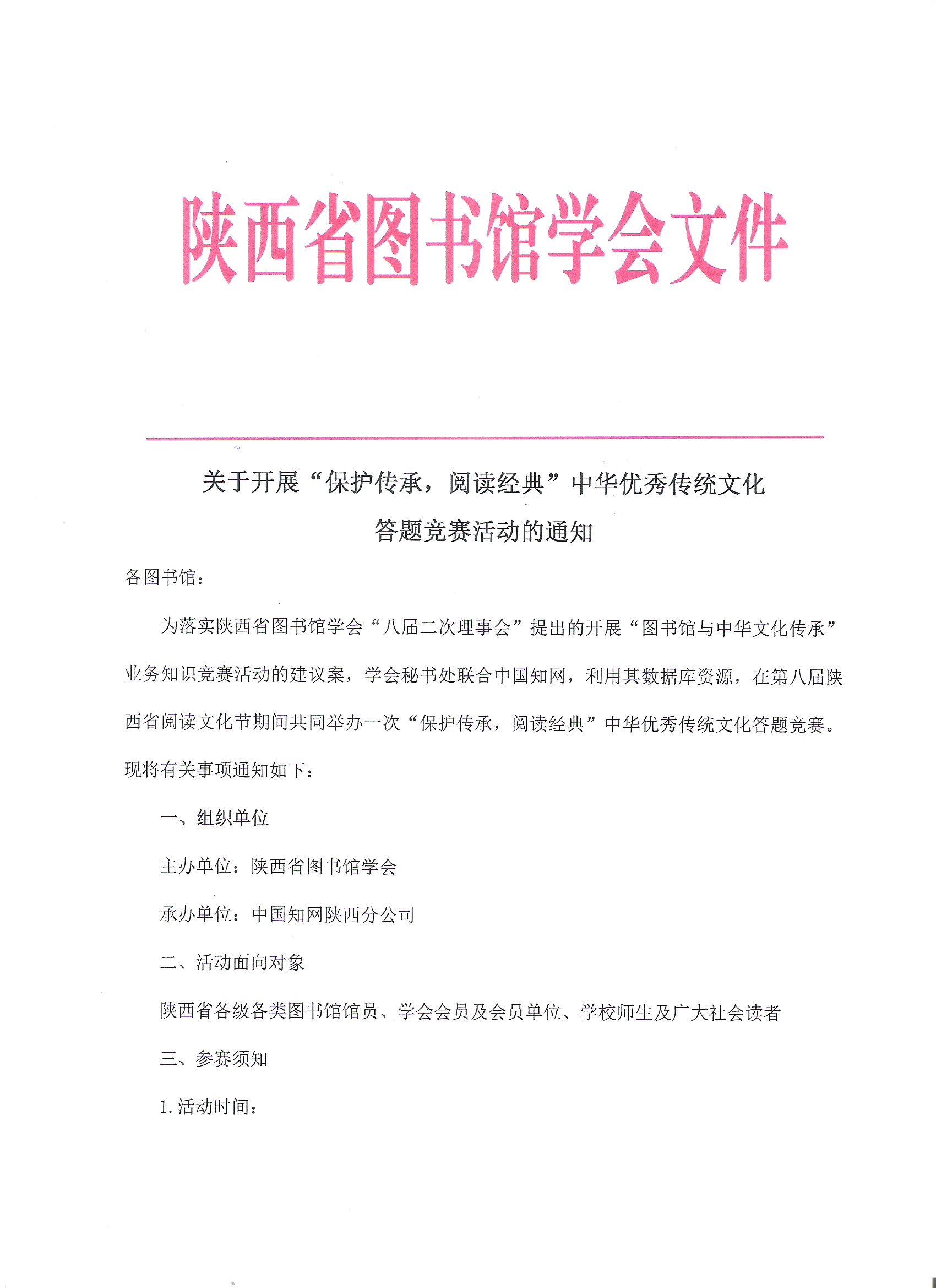 关于开展”保护传承,阅读经典”中华优秀传统文化答题竞赛活动的通知