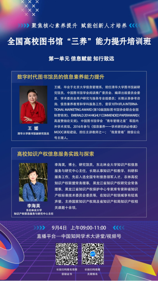 通知公告 | “三养”能力提升培训班:数字时代图书馆员信息素养提升与高校知识产权服务实践深度解析
