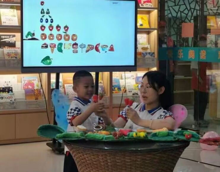 活动中,每一位有亲和力的教职工都极力通过夸张的肢体语言向小朋友演绎故事,故事中的小主公就像是小朋友的一个缩影,这些趣味横生的故事音频、绘本动画、互动游戏,帮助小朋友学会主动分享,感受分享的力量,理解友爱合作。