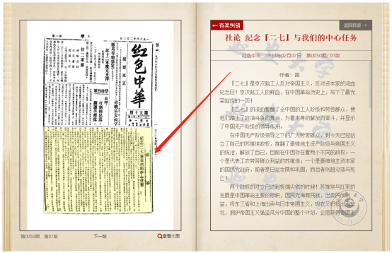 5. 点击左侧报纸原图中的热点,可右侧阅读对应的报纸全文。