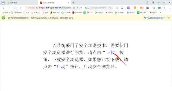 1 在浏览器地址栏输入:https://hsbk.yau.edu.cn:8443/red
