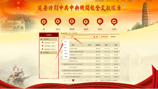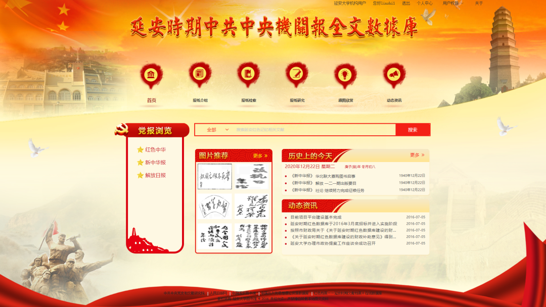 《延安时期中共中央机关报全文数据库》是数据库平台是一个集党报保护、传承、传播于一体的红色文献平台。是研究延安时期中共党史和延安精神取之不尽挖之不竭的红色资源宝库。作为党员干部寻找初心、滋养初心、淬炼灵魂的最好教科书。为中共党史及相关学科教学科研提供了支撑研究功能、为延安时期课题研究提供了丰富的史料!