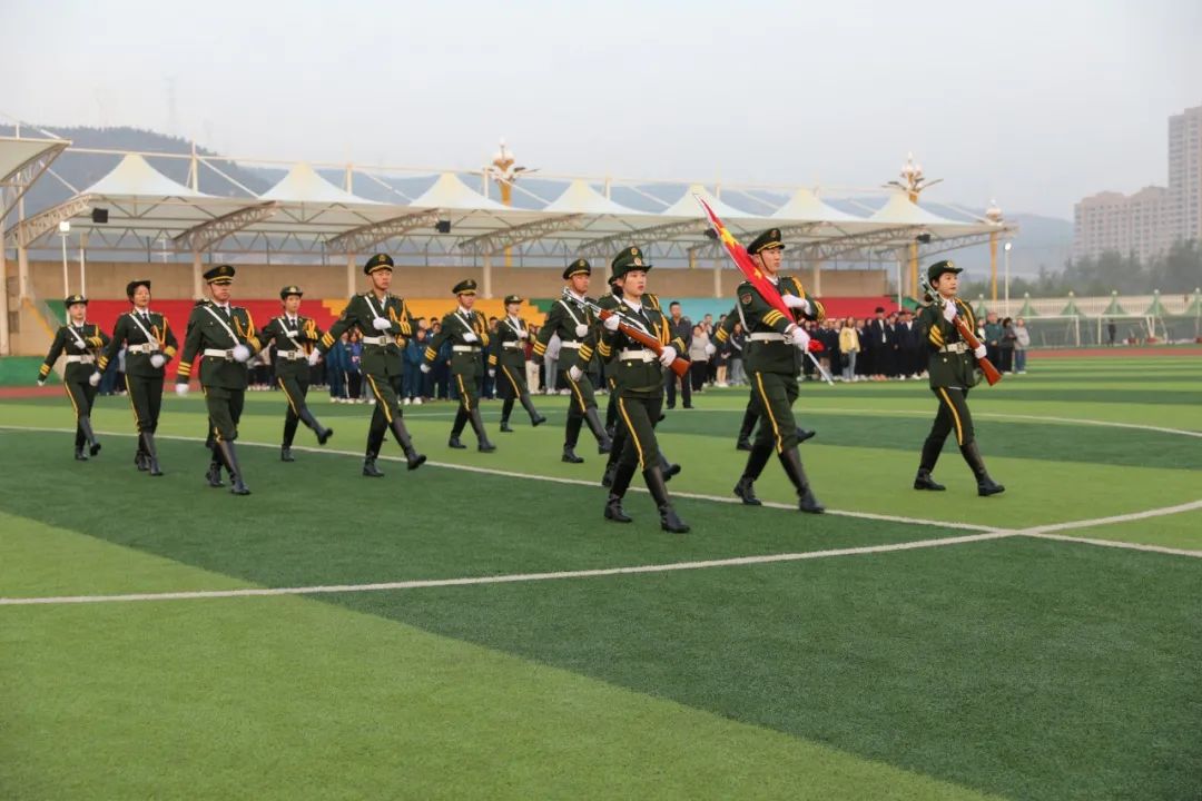 为庆祝祖国母亲71华诞,激励全校师生铭记先辈伟绩、传承革命精神、弘扬光荣传统,2020年9月25日早7:00,在学校操场上隆重举行了“庆祝中华人民共和国成立71周年升旗仪式暨国旗下的爱国主义教育”活动。全体师生参加本次活动,仪式由团委副书记司海燕老师主持。