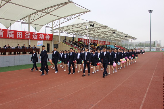 迎着暮春早晨明媚的阳光,伴随着激昂奋进的《运动员进行曲》的节奏,运动会开幕式各代表队入场式拉开序幕,各系运动员代表队,教工代表队‘和比赛裁判员依次入场,他们穿着整齐的服装,喊着嘹亮的口号,迈着坚实的步伐向主席台走来。