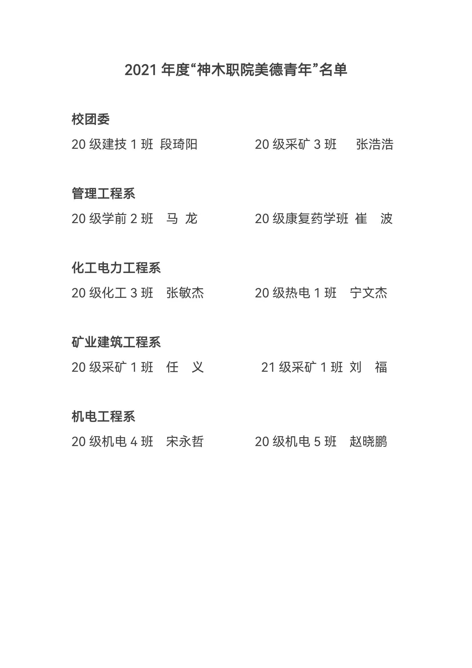 根据《五四红旗团总支、五四红旗团支部、优秀团干部、优秀团员、优秀志愿者的评选办法》《神木职院美德青年的评选办法》文件,团委开展评选活动。经推荐报送、资格审查等程序,最终确定了拟表名单。