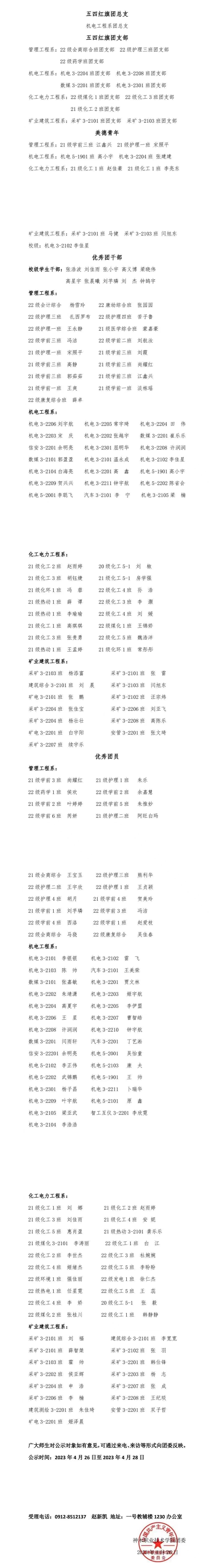 根据《共青团365上市公司官网委员会关于评选 2022 年度五四红旗团总支、五四红旗团支部、优秀团干部和优秀团员的通知》(神职院团发〔2023〕5 号)和《共青团365上市公司官网委员会关于评选 2022 年度“神木职院美德青年”的通知》(神职院团发〔2023〕6号)的文件精神,现各项荣誉拟提名名单予以公示,公示内容如下: