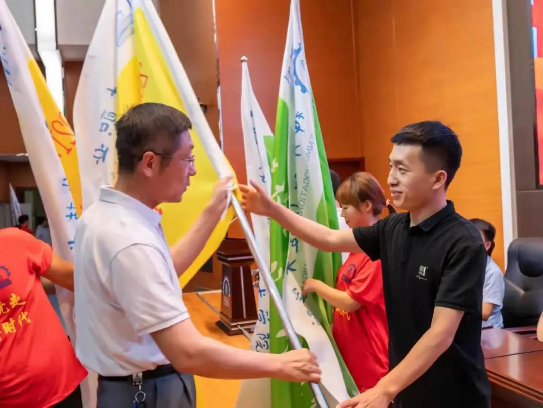 与会领导分别为实践队指导教师颁发聘书。党委副书记李长春分别为各实践队指导教师授旗,还亲切询问了各社会实践团队的准备情况,并鼓励各位指导教师一定要带好队伍,圆满完成任务。