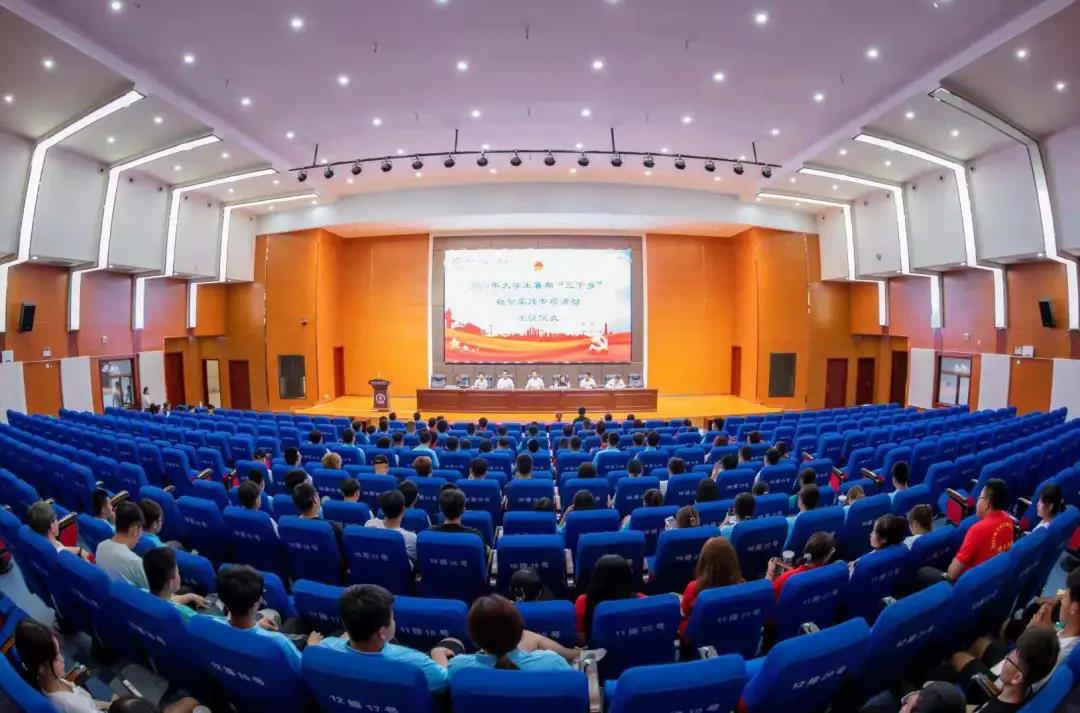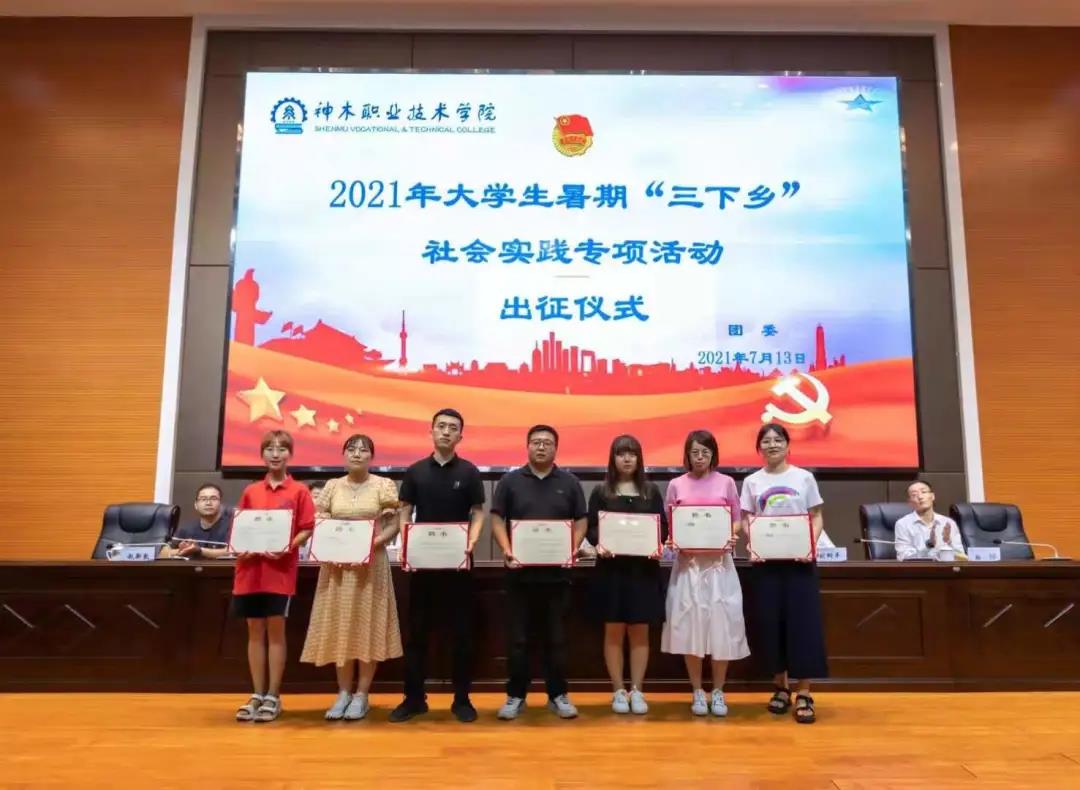 7月13日晚19:00,我院团委在图书馆报告厅举办了2021年大学生暑期“三下乡”社会实践出征仪式。党委副书记李长春、团委书记司海燕、团委副书记赵新凯、管理工程系副主任刘树平、化工电力工程系主任白韡、矿业建筑工程系副主任杨浩宇、机电工程系主任余智勇出席仪式,各系团总支负责人及28支社会实践团队218名师生志愿者参加仪式。