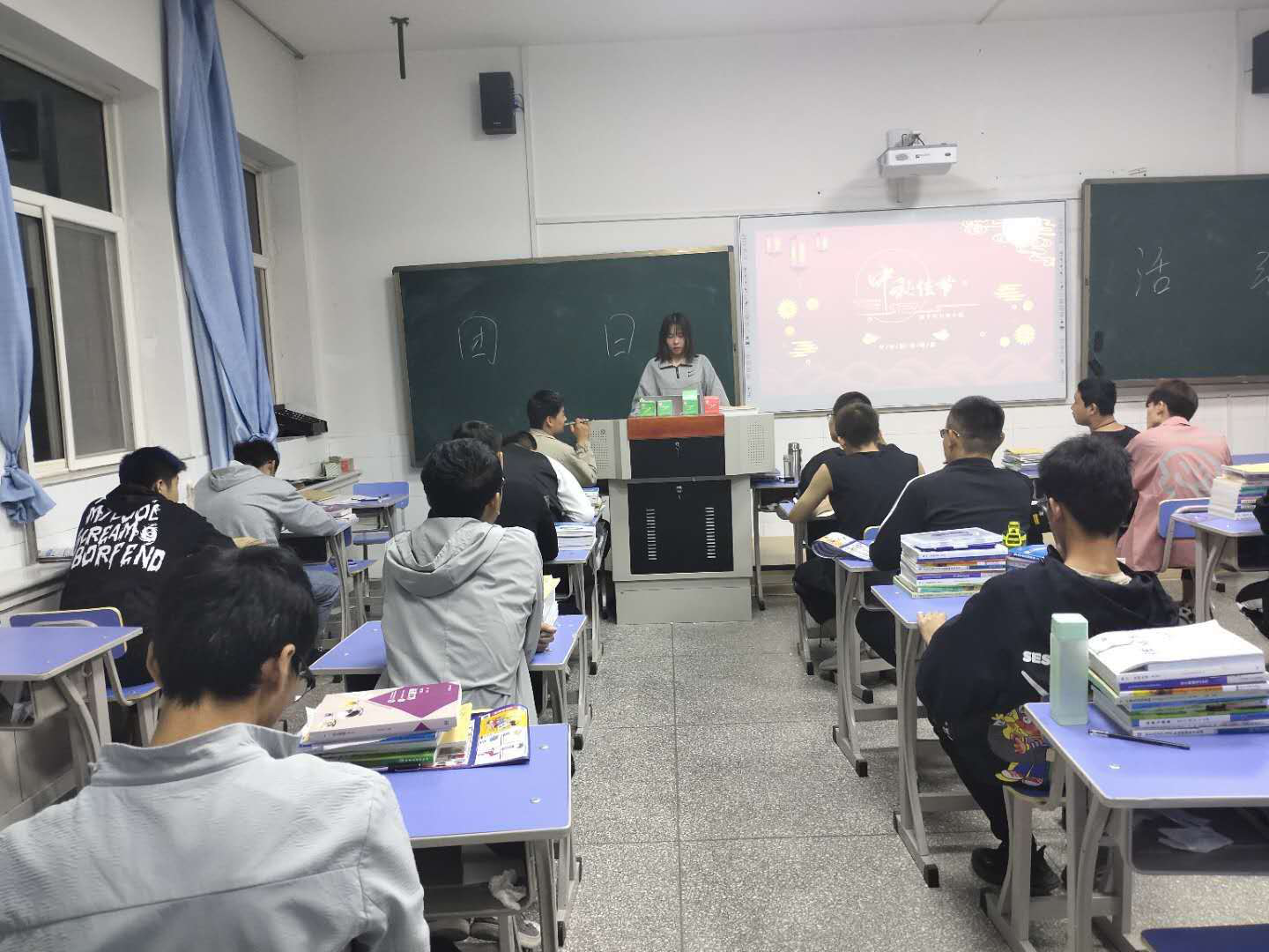 在一片欢声笑语中,以“我们的节日•中秋分享会”为主题活动。在活动中,学生与老师一起畅谈关于中秋的习俗,学生们把自己收集的关于中秋节的起源、寓意,嫦娥奔月、吴刚伐桂、玉兔捣药等传统佳话拿出来一起分享。大家谈中秋习俗、讲中秋故事、吟中秋诗词,气氛活跃,其乐融融。