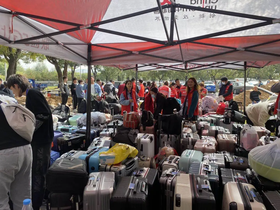 迎新工作如火如荼,到处都是忙碌的身影,志愿者们分工明确、有条不紊地迎接新同学,寄存行李处的志愿者老远看见有人来就跑去迎接,并把行李拿到指定位置摆放整齐,还提醒他们不要忘记报名所需的资料。