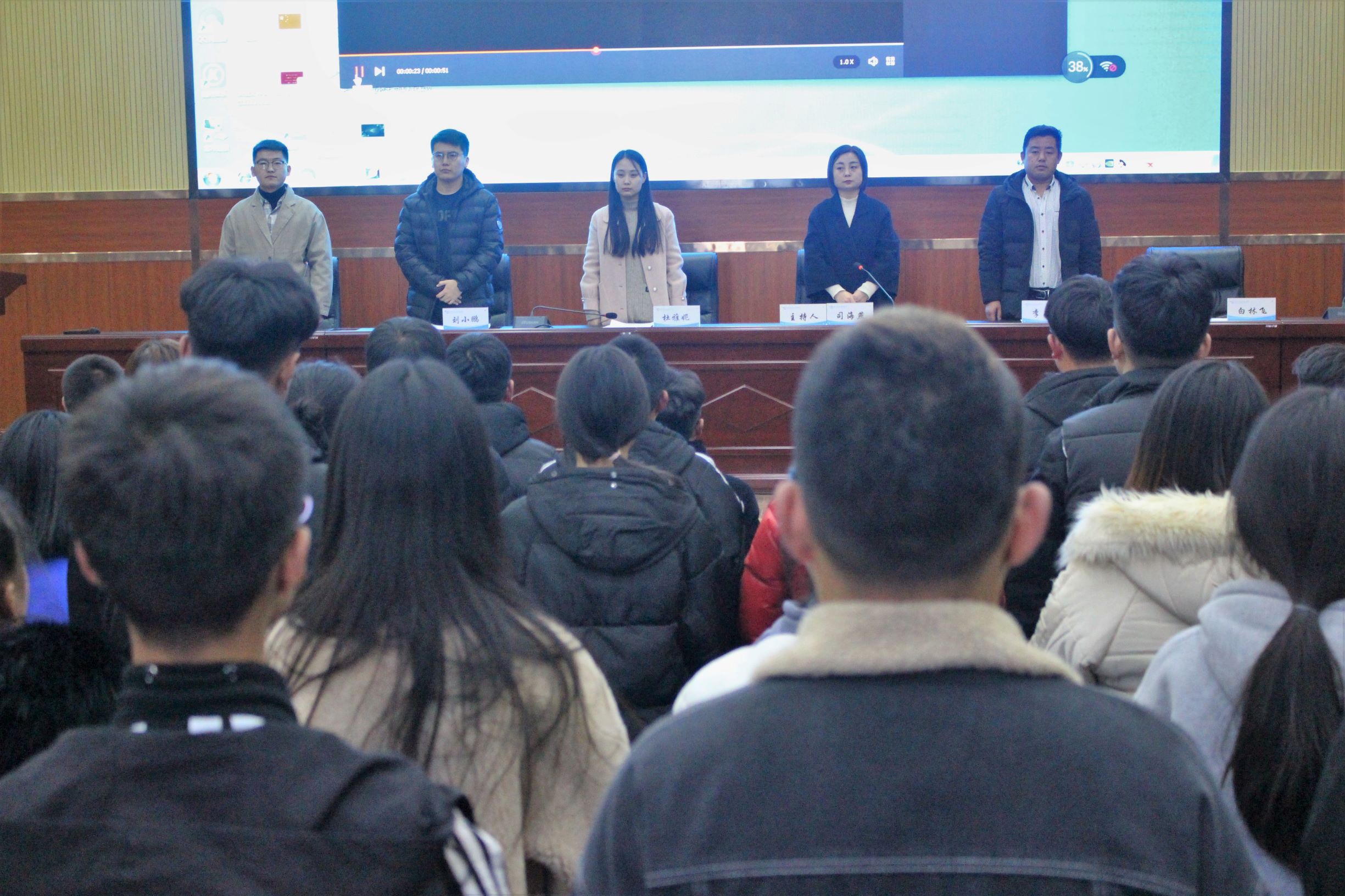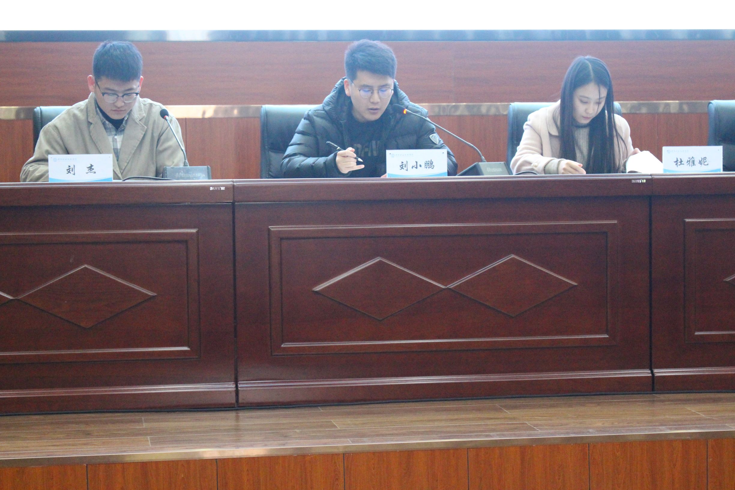 由张彬蔚老师宣读管理工程系培训名单;由刘旭老师宣读化工电力工程系培训名单;由白林飞老师宣读矿业建筑工程系培训名单;由魏璐老师宣读机电工程系培训名单;由团委办公室李炎斌宣读社联、学生会、团委培训名单。