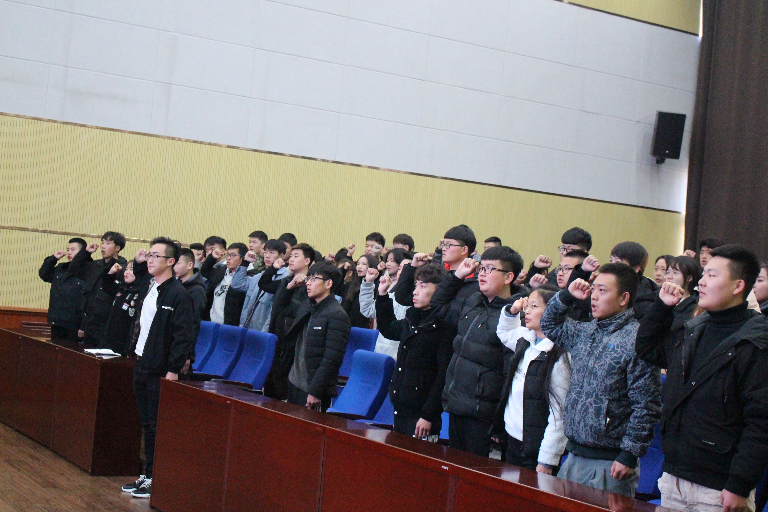 全体培训人员起立,跟着团委委员刘广平进行宣誓!