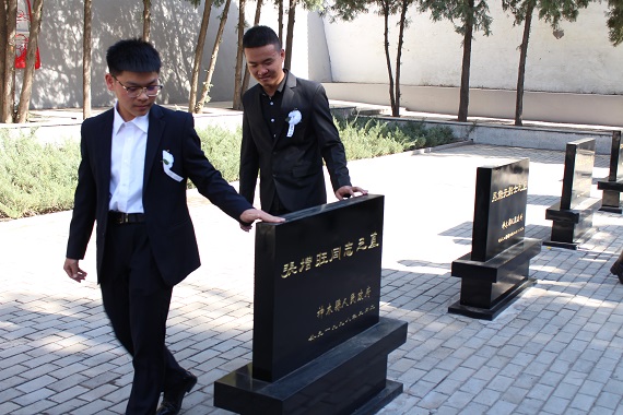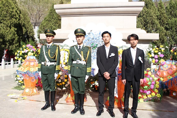 其次,在“革命烈士纪念碑”前,举行了简短而隆重的悼念仪式,向为国捐躯的革命先烈们默哀三分钟。
