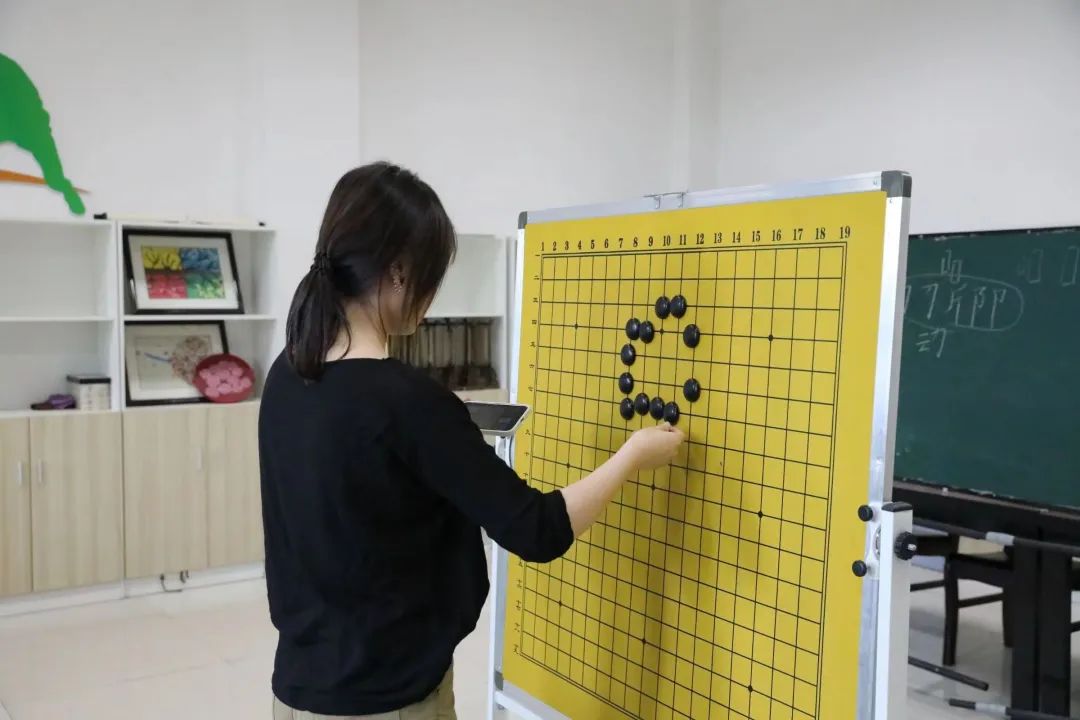 在本次社团活动中,老师给同学讲解了在围棋中的“两眼活棋”以及“愚型”和“好型”。