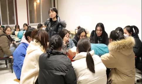 医你所爱社团活动室中举行静脉输液活动。在小组活动中,社员们积极参与,并学会了如何使用输液器和进针角度,每个人的脸上都洋溢着开心的笑容。在老师做总结时,社员们认真听讲,分享自己的感受和认知,每个人都进行实际操作。