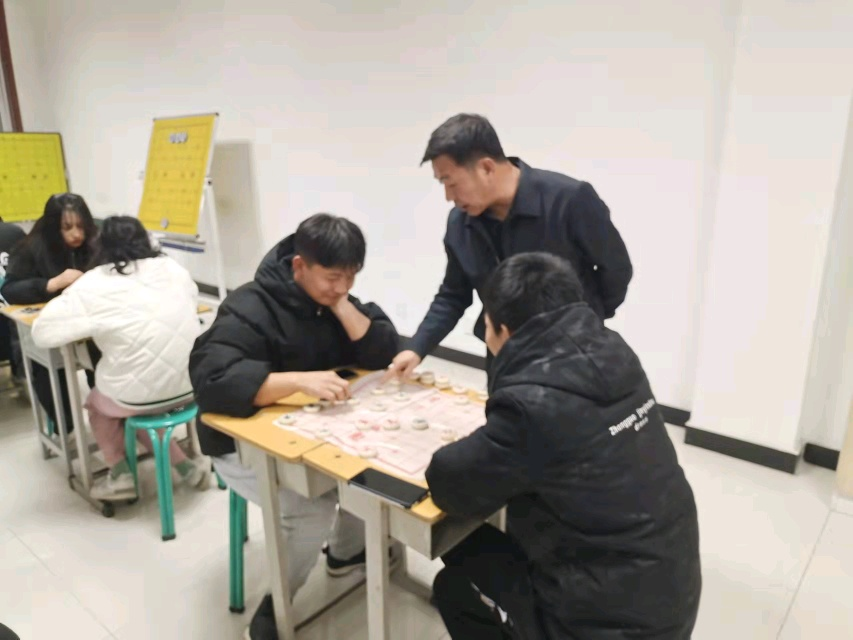 活动刚开始,老师就在上面布下残局,同学们看见残局,立马行动起来。这既是挑战也是练习,最开始看见残局,苦思冥想,绞尽脑汁,下到一半,有了些许头绪,有的经过老师指点,茅塞顿开,胜券在握,下到最后,不用说,就可以从脸上看出来。此次社团活动增强了同学们的竞争与挑战意识,更增进了彼此间的相互学习,共同提高信任与信心,丰富同学们的课余文化生活。