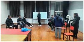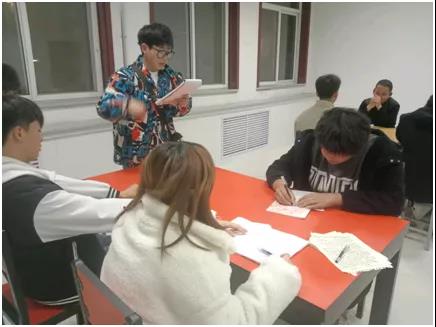 活动一开始我们进行了口音训练,训练结束后老师给大家发了绕口令,让同学们每人快速读20个菜名,并留了一定的时间让同学们进行练习,练习的过程中同学们互相交流,互相鼓励支持。准备完毕后,每人依次进行诵读由老师给每个人进行打分。接下来,老师组织同学进行了小品演出,并让在座的同学们观看并提出意见。