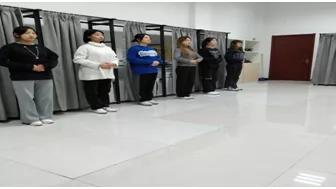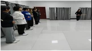 首先,进行二十分钟形体站立,规范站姿以及手的摆放姿势,其次,加强对以往学习知识的巩固,由王老师对每位同学进行调整。
