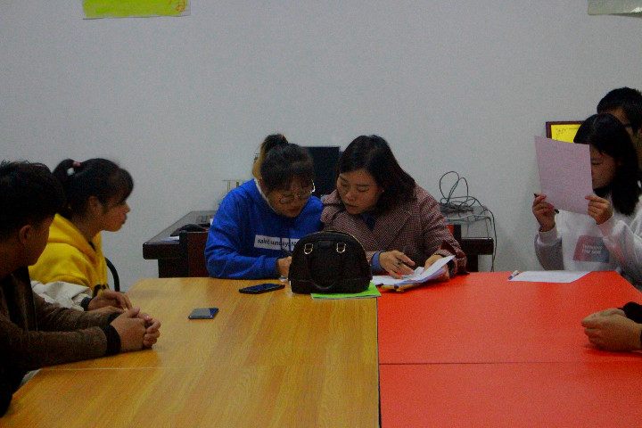 首先,指导老师正式欢迎新社员的到来,详细登记了各位成员信息;其次,安排了捐衣物献爱心和情景剧(小品),详细分配各人员任务,进行分组安排,并且说明了接下来社团活动内容。