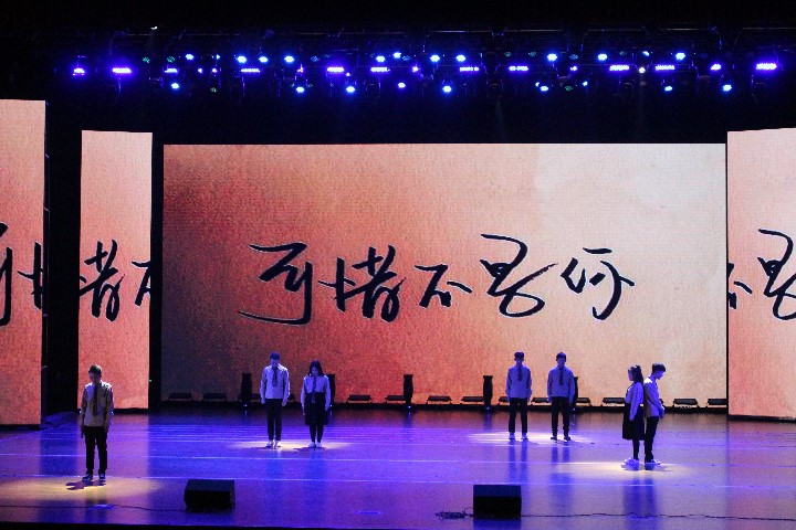 伴随欢快的旋律,迈着青春的舞步,演出在开场舞《腰鼓表演》中拉开帷幕。《腰鼓表演》将一片喜庆融洽的气氛带入了现场,随后,主持人宣布晚会正式开始。诗朗诵《青春中国》激起大家对祖国的热爱之情;相声《我忍不了》恢谐生动的表演引发现场一阵阵笑声;舞蹈《格桑花开》带领大家感受了来自藏族的对幸福吉祥的期盼;一曲吉他弹唱《听说》让大家意犹未尽;由书法协会和手工绘画协会共同带来的书画展,将书法与艺术的结合体现得淋漓尽致;《热舞青春》更是将整场晚会推向高潮,台上台下成了一片激情四溢的海洋。