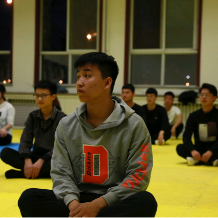 会议完后,本社便开始今天的实战式训练;让有经验的老成员出来进行对打,然后让新的成员在一旁观摩;实战训练结束后,教练便开始让新成员们进行训练。