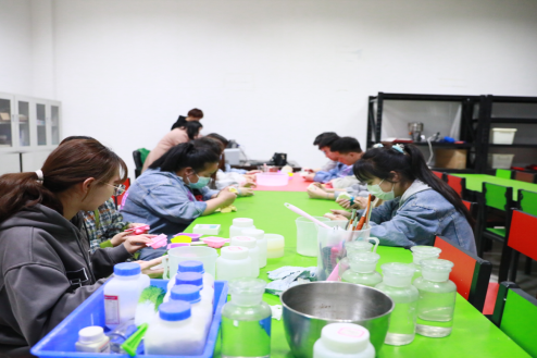 本次活动开展的主要内容:一开始老师让新来的同学做一下介绍,然后给同学们布置了一些任务将没有做过肥皂的和做过肥皂的进行了分组;让没有坐过肥皂的同学对一些已经做好的肥皂进行真空包装,剩下的会做肥皂的,分成两组,一组做家事皂,另一组做洗衣。分组之后,老师带领同学们将肥皂的配置进行计算,同学们也认真按照老师的要求进行制作。
