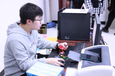 本次社团的主要活动是编译C语言,用电脑软件给开发板上面写入代码,从而使得开发版展示区不同的功能。此次运用开发板及其配件如:数据转接线、杜邦线、震动马达、开发板等。本次社团活动项目主要由学生亲自动手做出震动马达传感器。经过一番实验以及测试,震动马达终于震动了起来,并且按照电脑编辑的程序语言,有规则的震动。此次社团活动主要锻炼了同学们熟悉使用开发板编译代码,使同学们对开发编译Arduino软件更加进一步了解。