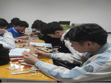 我们组织大家开展了有趣的纸浆画,增加同学们丰富的课余时间。纸浆画是以纸浆为主要原料创作的工艺美术作品,是一种既环保又好玩的绘画。在创作过程中,将废弃“宣纸碎屑”作为纸浆原料,共同制作具有极佳装饰效果、充满童趣意味的纸浆画,体验一场艺术与环保的碰撞。男生分为小组,体验其中的快乐,每个人都拼的不亦乐乎。通过拼图纸浆画,让大家明白一个团队合作的重要性,也可以让学生们的兴趣爱好得到发展。