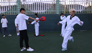 本节课的内容是复习上节课学过的动作和基本功,由教练带领学员们在操场开展复习活动。