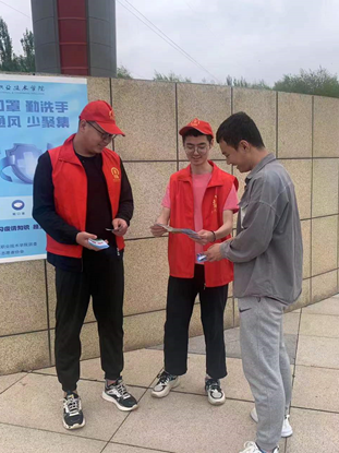 为了疫情情能早日结束,大家能了解疫情防控知识,我校志愿者,定制海报,宣传手册,为广大师生做着细致的讲解,和宣传,提醒大家正确佩戴口罩,做好个人防护;同时,志愿者向同学们发放“学习疫情知识 担当防疫重任”主题宣传手册。