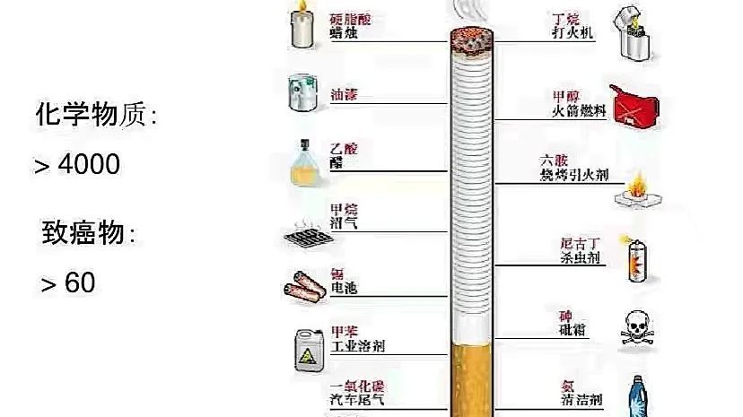 烟中的致癌物质很多,如尼古丁、焦油、苯等,会给身体带来极大的伤害,如果长期吸烟容易患上消化道疾病、口腔疾病、口臭、肺癌、心肌梗死等等疾病。吸烟会污染环境,如果你吸烟就会影响到你身边的家人及朋友被动地吸二手烟,如果老人被动吸二手烟,容易导致冠心病等,儿童吸二手烟容易引发哮喘、肺炎等病症,如果怀孕的女人经常吸二手烟会影响到肚里的胎儿。总的来说,请尽快戒掉烟,吸烟有害健康,养成良好的习惯,走向美好的未来。