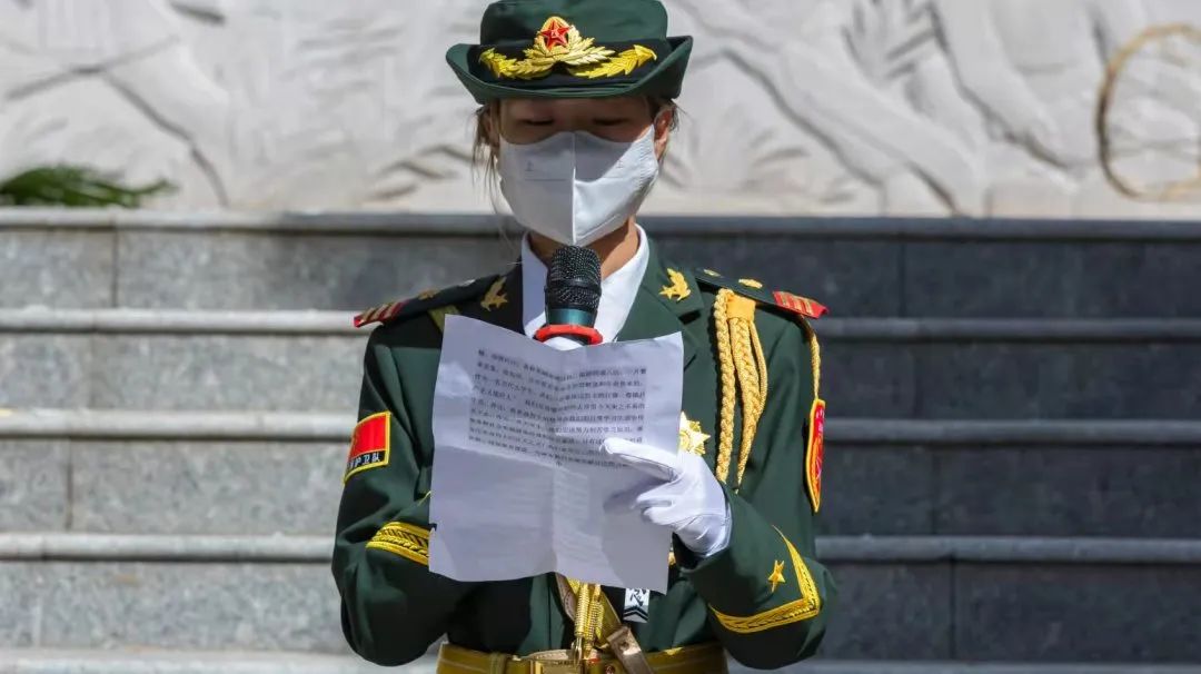 在全体师生的注目下,国护代表迈着铿锵有力的步伐,向庄严雄伟的烈士革命纪念碑敬献花篮。