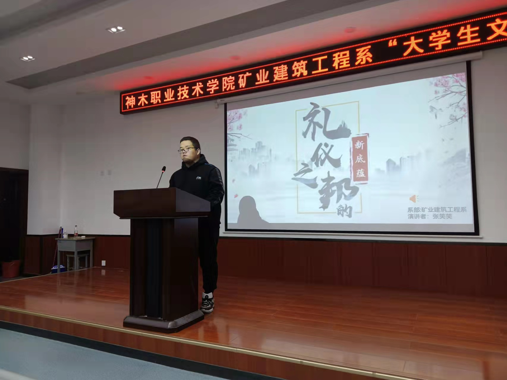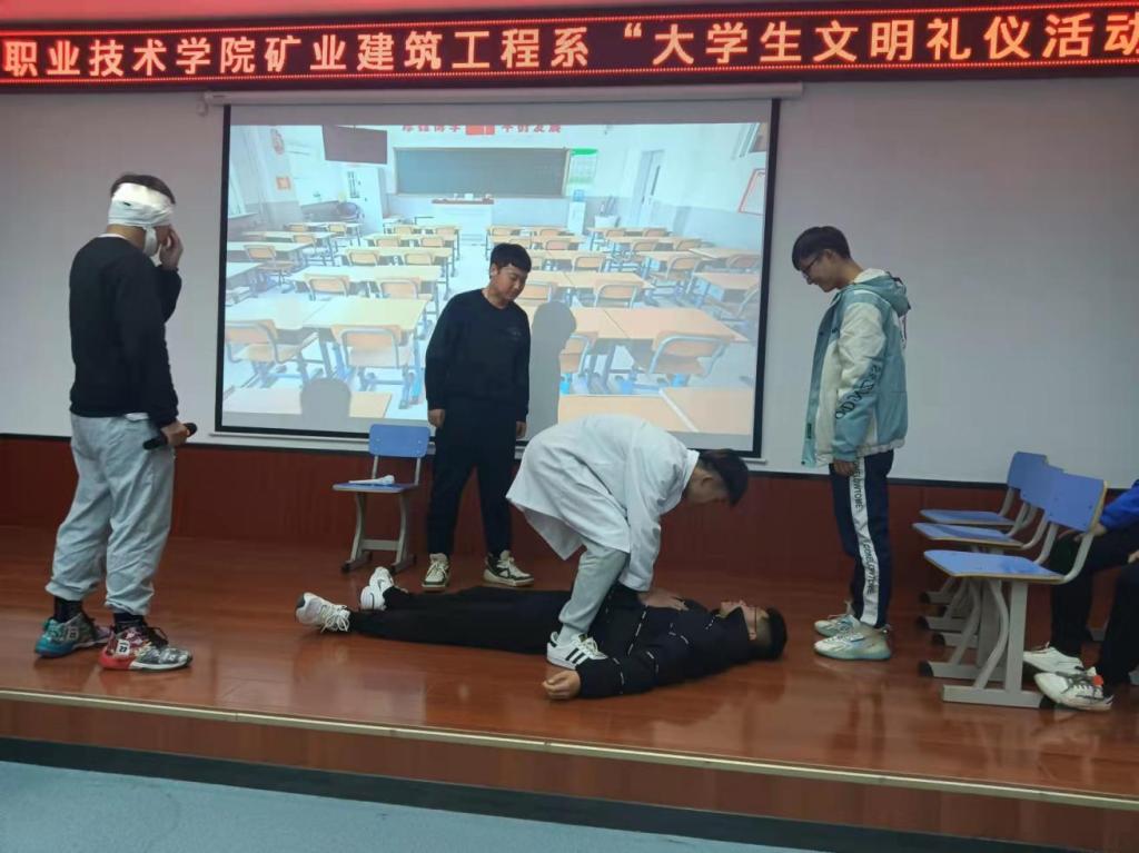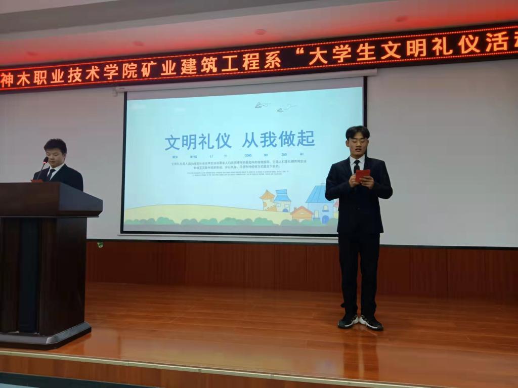 2021年12月9日,由学生处主办,矿业建筑工程系承办,矿业建筑工程系21级新生六个班级在四号教学号楼二层报告厅举办了“大学生文明礼仪活动”,活动过程中主持人慷慨激昂,参与者积极活跃,观众们被深深吸引。活动开始前由评委代表发言,开启当晚的活动,活动总共分为四个环节,第一环节由学生代表作关于“礼仪”的精彩演讲;第二环节由六个班分别进行关于“礼仪”的文艺展示,主要以小品形式为主,内容风趣幽默,同时引人深思;第三环节是班长代表发表本次活动的感受,讲述自己对礼仪的看法;第四环节是学生互动环节,现场随机选取十名学生,回答自己身边的文明行为和不文明行为。活动结束,由评委代表依次对本次活动的积极参与者颁发奖项,鼓励学生们积极参与院系活动,丰富自己的大学生活。