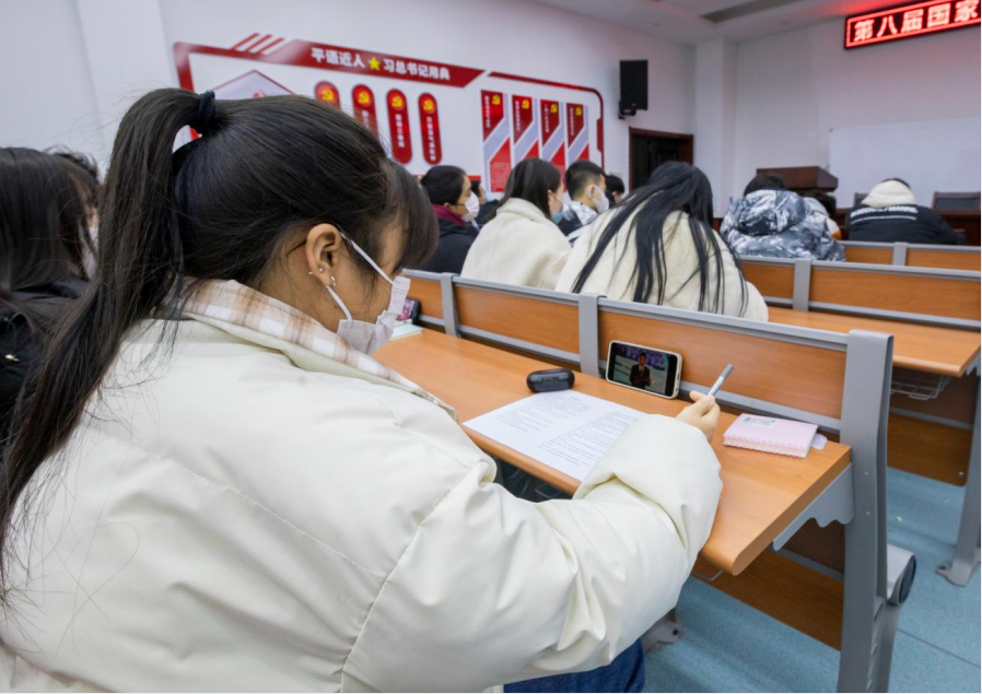 2021年12月3日上午9:00,365上市公司官网学生工作处组织学生代表在四号教学楼二层报告厅观看了第八届国家宪法日“宪法晨读”活动同步直播。