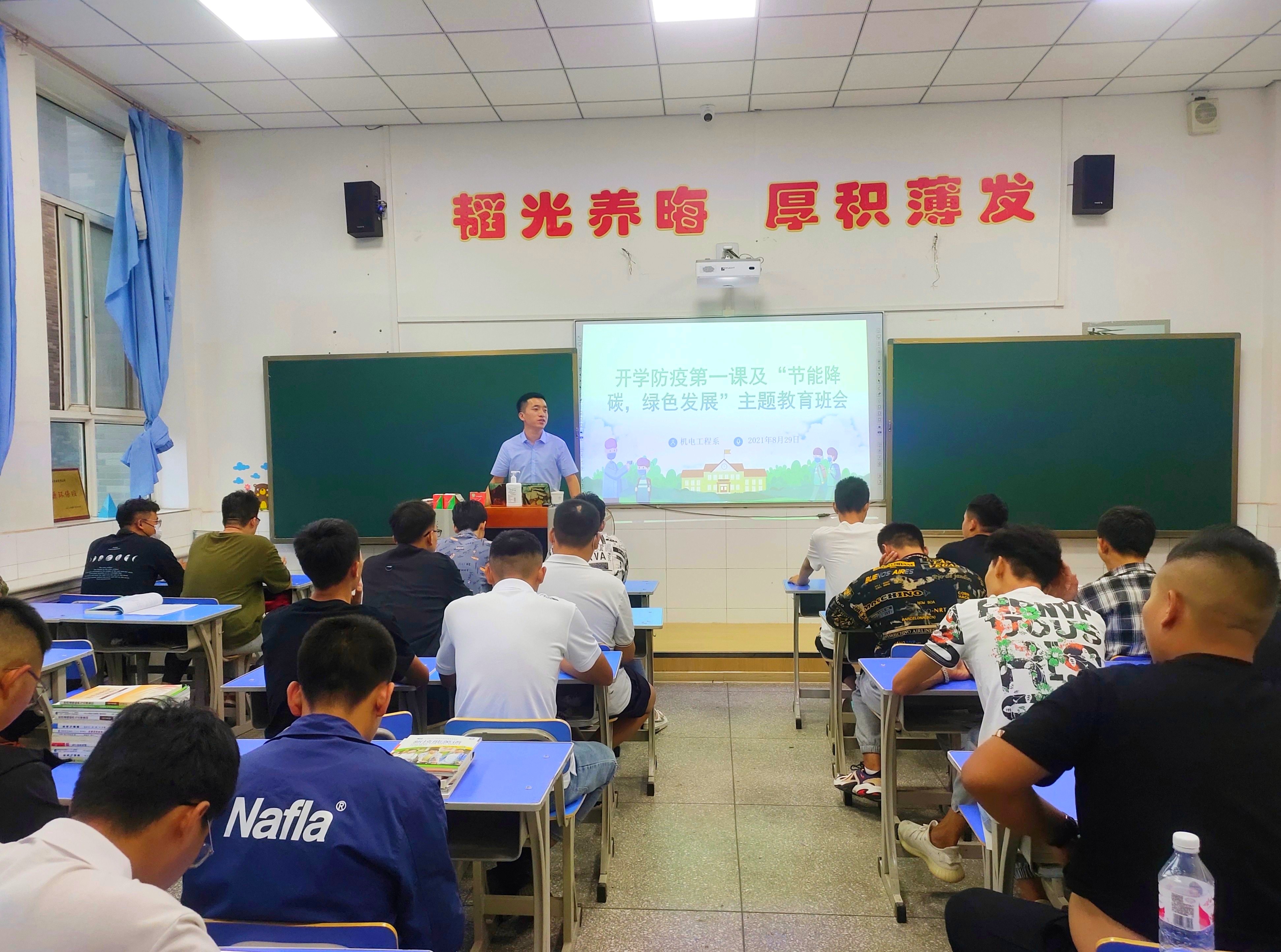 2021年8月29日晚,学生工作处组织返校大二、大三年级学生开展“防疫第一课及节能降碳 绿色发展”主题班会,本次班会由系部专职辅导员主持。