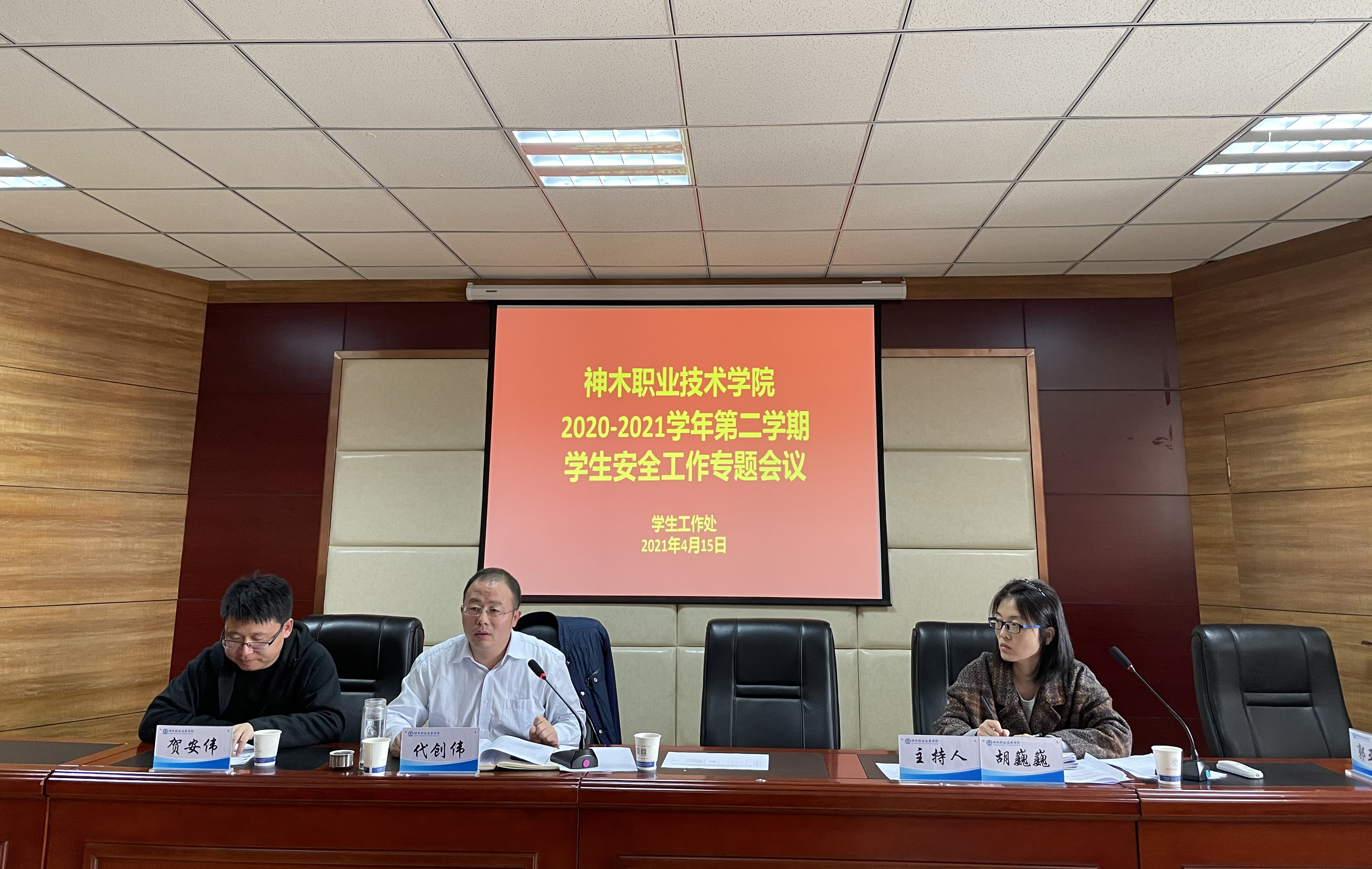 2021年4月15日学生处组织学生处全体、各系分管学生工作的领导、学工办负责人、全体统招班辅导员召开2020-2021学年第二学期学生安全工作专题会议。