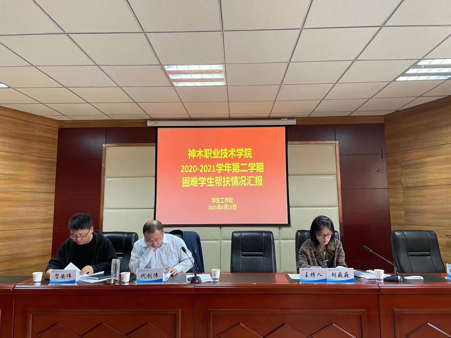 2021年4月15日(星期四)下午在1号教辅楼509会议室召开困难学生帮扶情况汇报会,学生处全体、各系分管学生的领导参会,会议由学生处胡巍巍副主任主持。