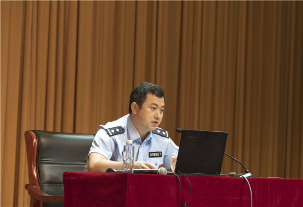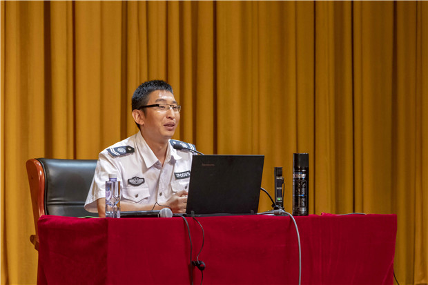 校园法制教育为主题的主讲人是彭虎,向同学们讲解了法律的含义、法律的执行、公安机关的由来和对违法犯罪的理解以及校园内的违法犯罪,并且对青少年犯罪的原因和犯罪后对人生的影响进行了分析。他重点提到了大学生不仅要注意校内安全,还要注意公共场合安全、网络安全、交通安全,还要防诈骗、防抢劫和防性侵害,同时他还希望每个大学生都要遵纪守法不要违法犯罪。