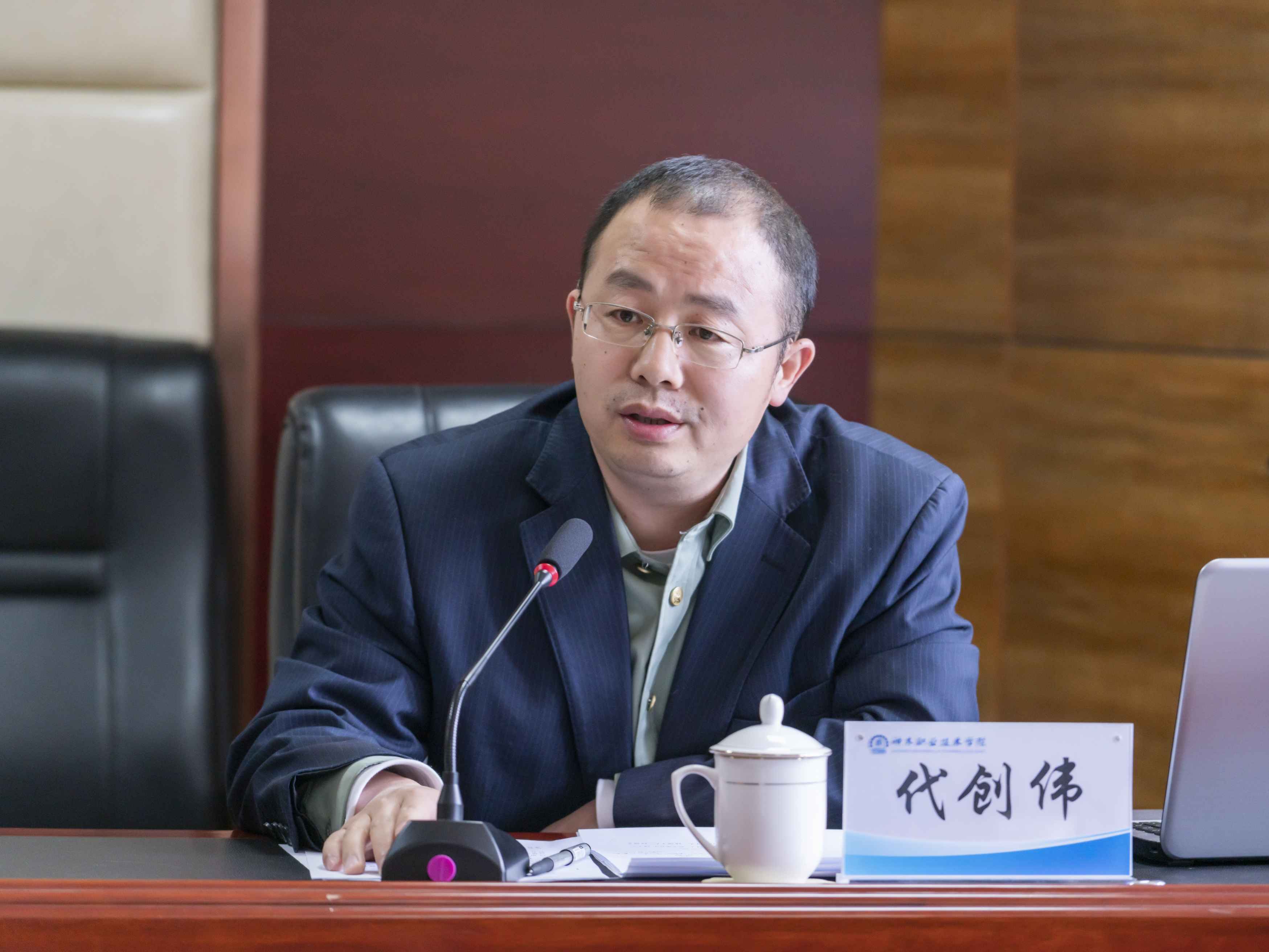 学生处处长代创伟汇报了征兵工作站运行情况以及征兵工作站下一步的工作计划。代创伟指出,2022年春季我校已超额完成省级下达的在校生指标任务,下一步我们将重点征集大学毕业生入伍,并积极推进军士的招录。