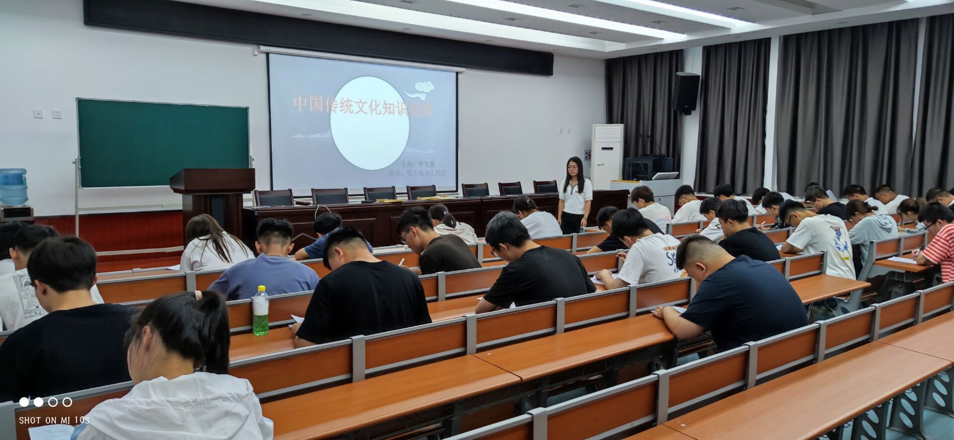 为进一步弘扬中华优秀传统文化,发扬中国传统文化魅力,增强学生知识储备,推动校园文化建设,由学生处主办,化工电力工程系承办的“弘扬中国传统文化”知识竞赛于2022年6月6日晚自习在4号教学楼2号报告厅顺利举行。