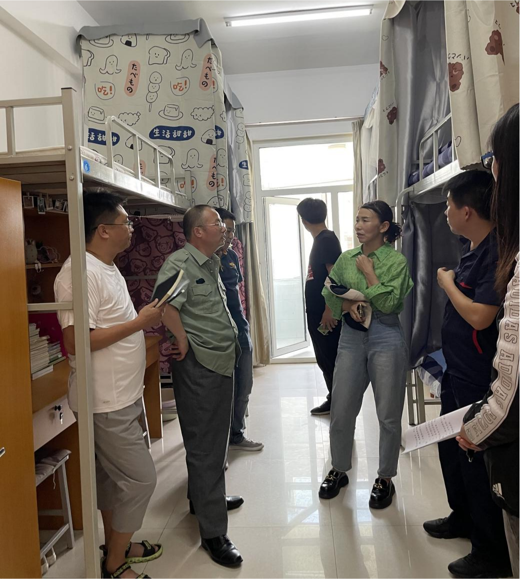为了推动我校文明宿舍的建设,创建整洁、文明、舒适、规范、安全的生活环境。2022年6月18日下午3点,由郭亚芳副校长带队,学生处处长代创伟、学生处副处长胡巍巍、系部副主任、学工科、专职辅导员参加,检查宿舍安全、卫生以及五星级宿舍验收工作。