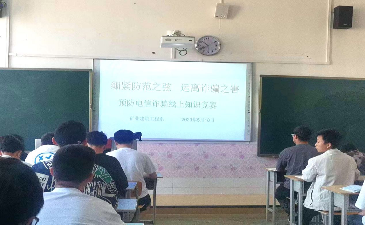 为持续提升防范电信网络诈骗宣传的覆盖面和针对性,同时不断提升广大师生防骗、识骗能力,从而切实保护广大师生财产安全,矿业建筑工程系于5月18日至19日开展了主题为“绷紧防范之弦,远离诈骗之害”的知识竞赛活动。