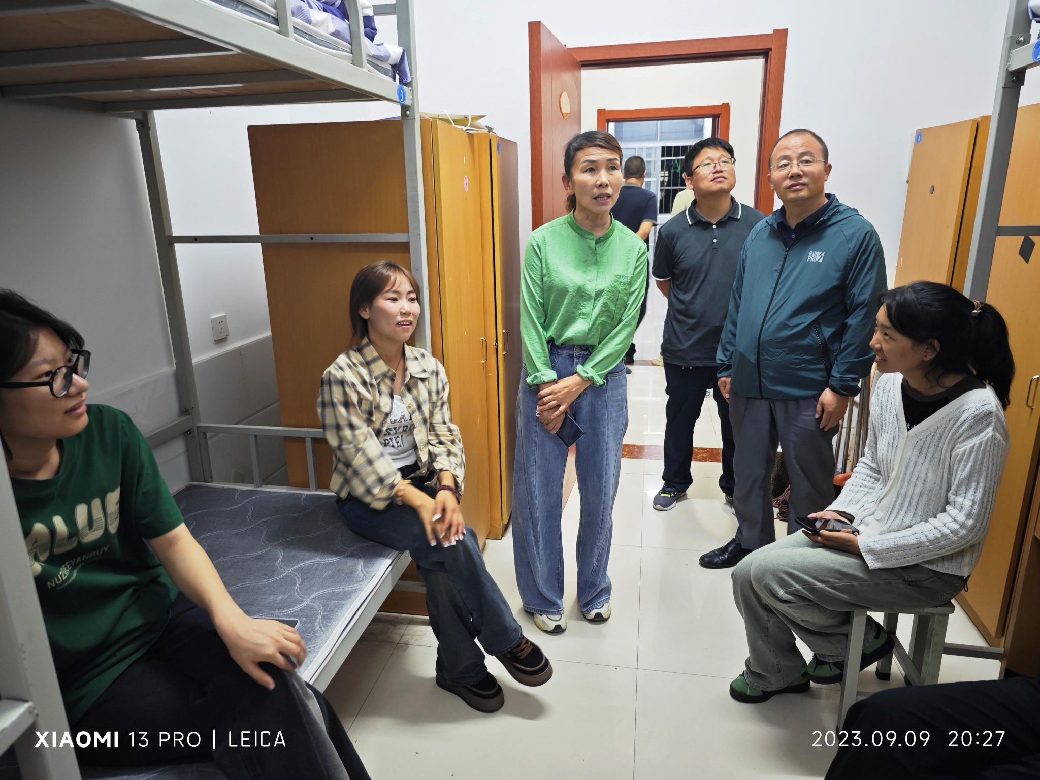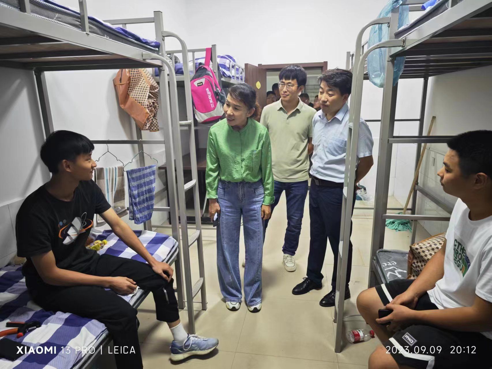 2023级新生报道于9月9日拉开帷幕。学生入校当晚郭亚芳副校长就带领学生处、安保处、后勤处以及系部领导深入新生宿舍,关心学生饮食、住宿、生活等情况。
