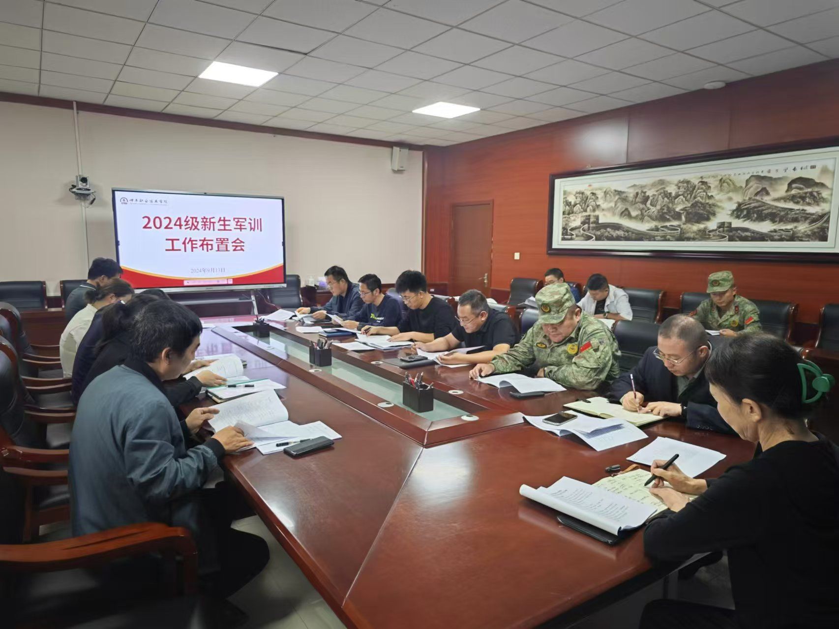 为进一步做好新生军训工作,确保新生的顺利参训和全面发展,我校于2024年9月13日上午召开了新生军训工作布置会议。会议由郭亚芳副校长主持,学生处、后勤处、安保处、组宣部、校医务室、军训教官及各系领导参加了会议。