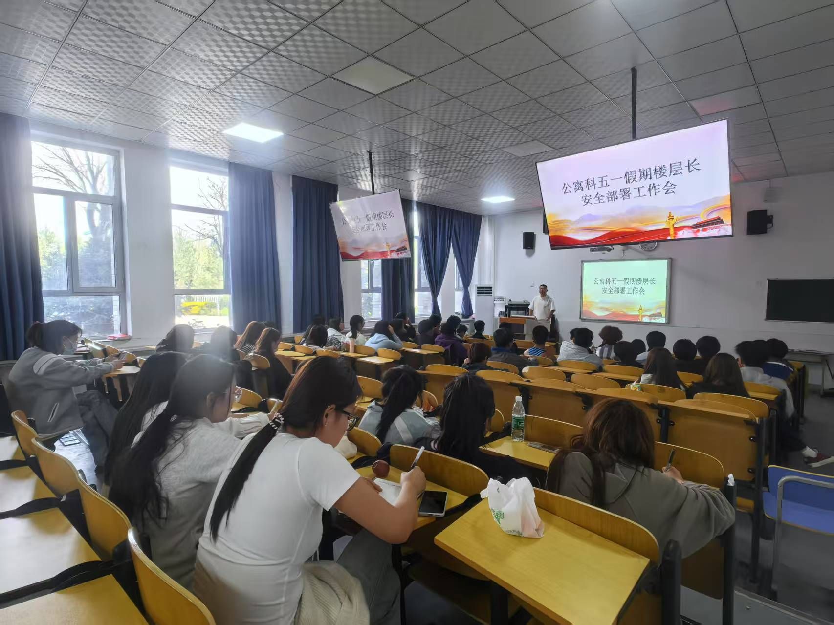 中午十二点在3号教学楼召开公寓科五一假期楼层长安全部署工作会,公寓科崔晓宇老师以及各楼楼长层长参加会议。崔老师首先向楼层长传达五一假期公寓安全管理的重要性和具体要求, 明确各楼层长在假期期间的安全管理职责,确保责任落实到人,同时协助辅导员完成晚查寝的工作。