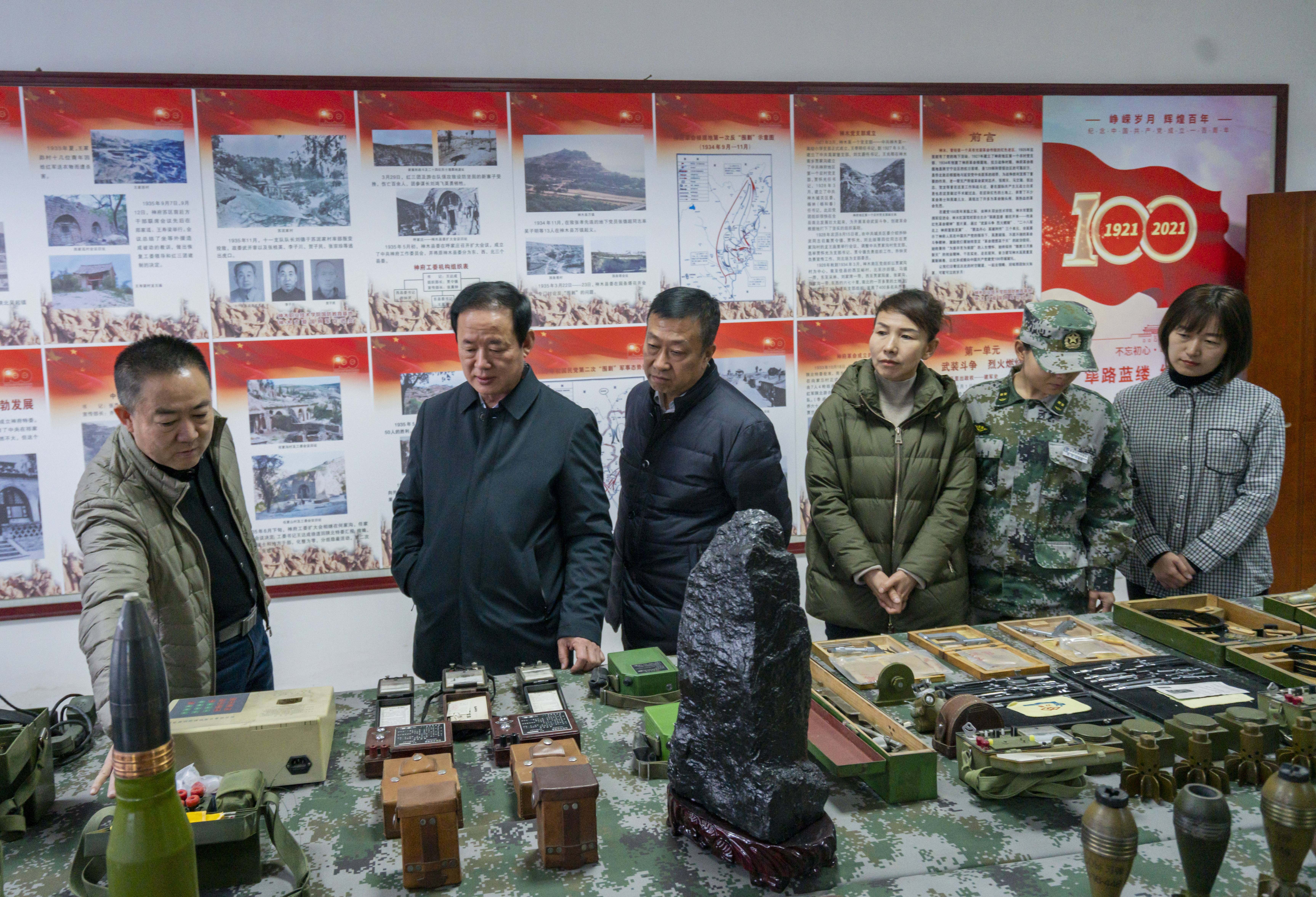 12月21日,神木市人大常委会主任杨晓琦莅临我院,参观了我院征兵工作站和国防教育基地,校党委书记、校长艾国,副校长郭亚芳陪同参观。