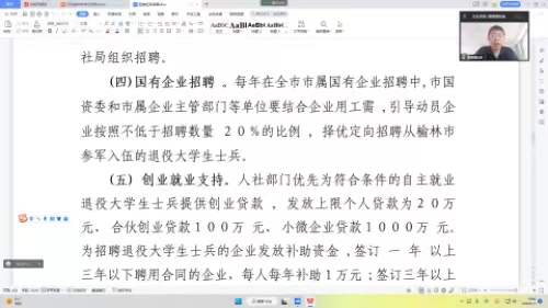 为了让我校老师精准掌握征兵流程和征兵政策,动员广大学生积极参军入伍,圆满完成2023年度春季征兵任务,2023年1月7日下午3时,我校组织召开2023年度春季征兵业务培训会。学生处主任代创伟出席会议并作了动员讲话,各系主任、副主任、学工科长以及全体辅导员参加了业务培训会。市人武部政工科科长赵迪应邀参加会议。会议由学生处李春艳老师主持。