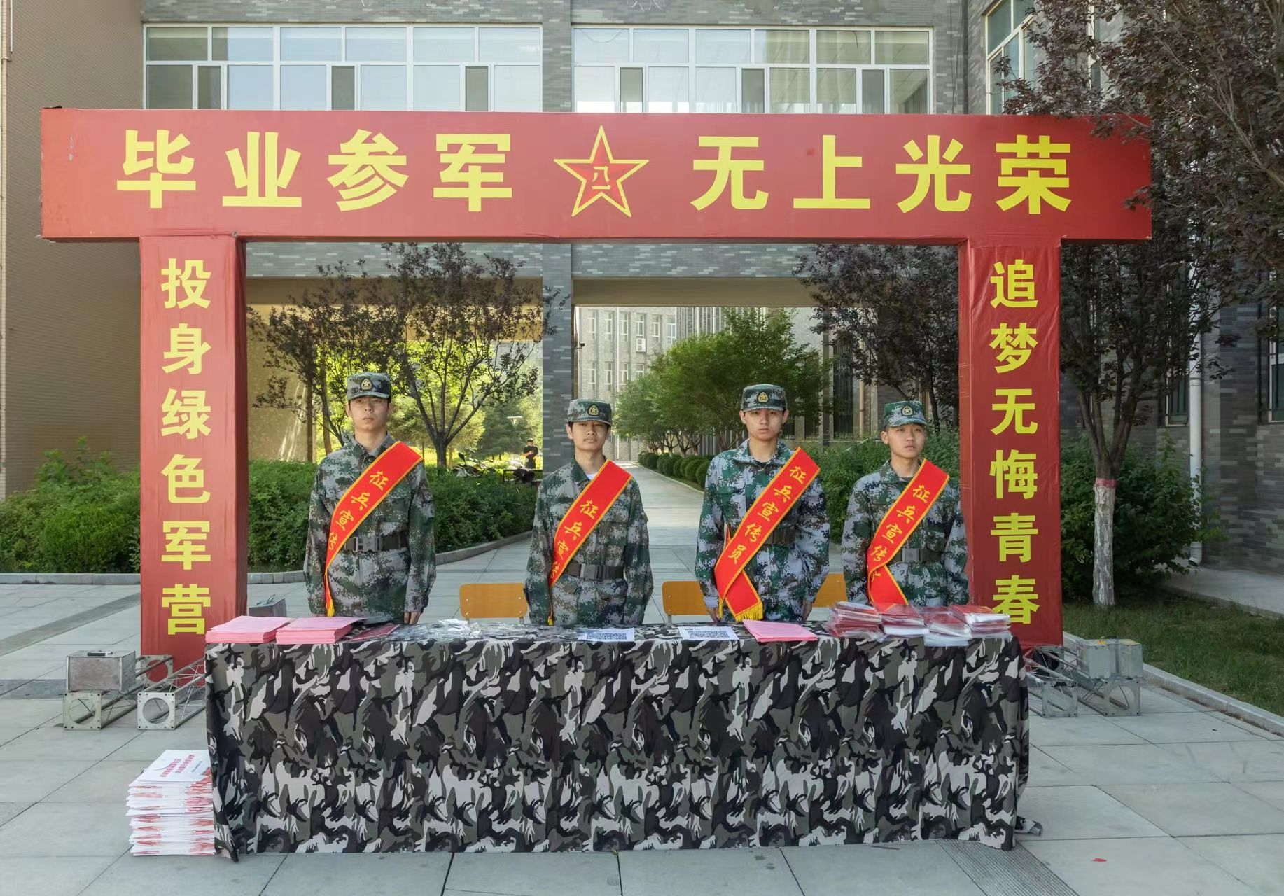 我校征兵工作站利用毕业生返校时机,组织工作人员通过展板宣讲、发放资料、现场咨询等形式进行宣传,鼓励广大学子参军入伍,投身军旅。参军入伍,不仅政治上有优待,就业上也有优惠。在毕业典礼开始前,邀请神木市人武部政工科赵迪同志围绕应征流程、发展前景、就业安置、立功受奖等优待政策为全体毕业生进行政策宣讲,讲清参军入伍就是优质就业、就业与入伍二者兼可得的辩证关系,切实打消大家思想顾虑,有效激发了高校毕业生参军入伍的内在热情。