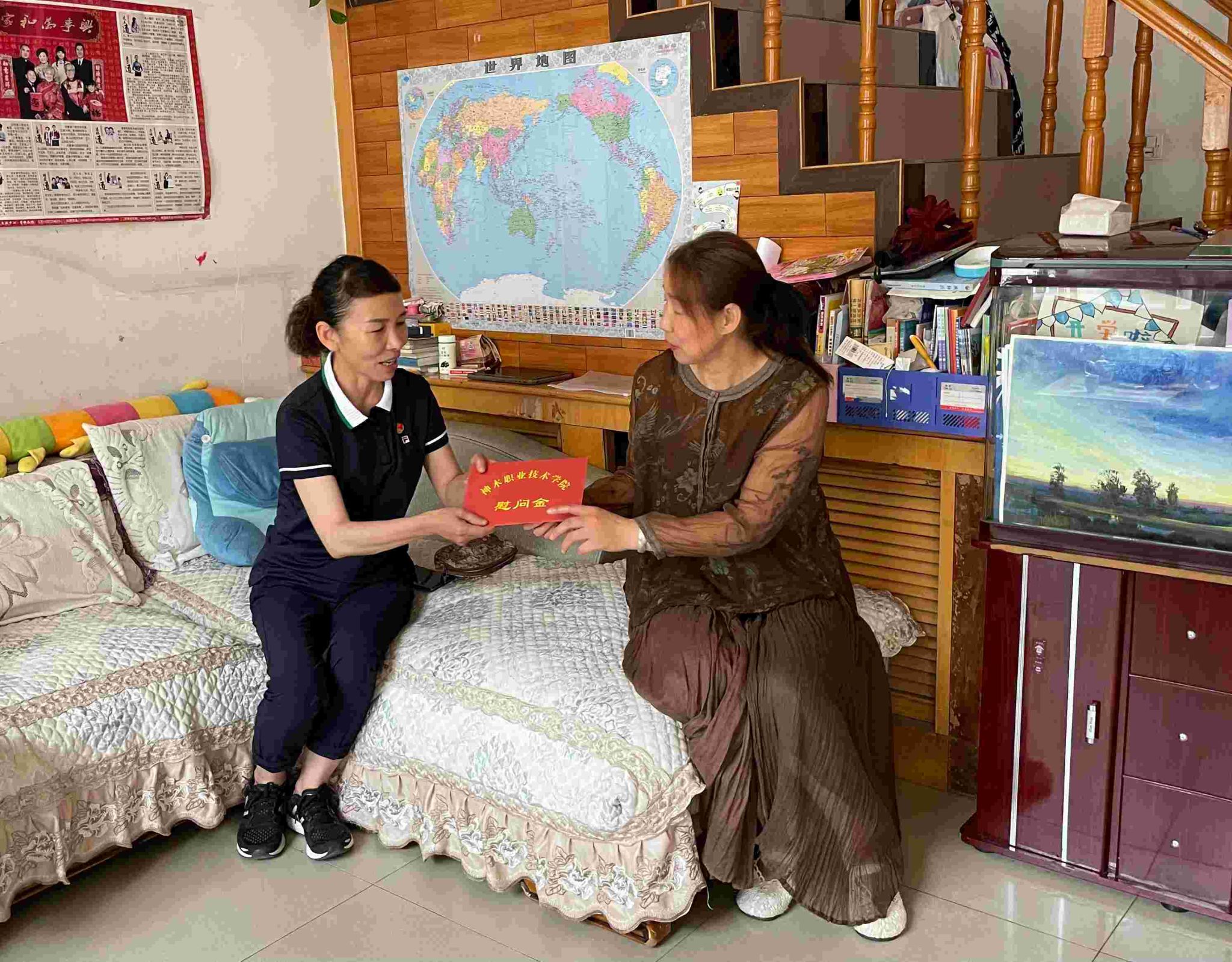 最后,郭亚芳为家属送上学校的慰问金。
